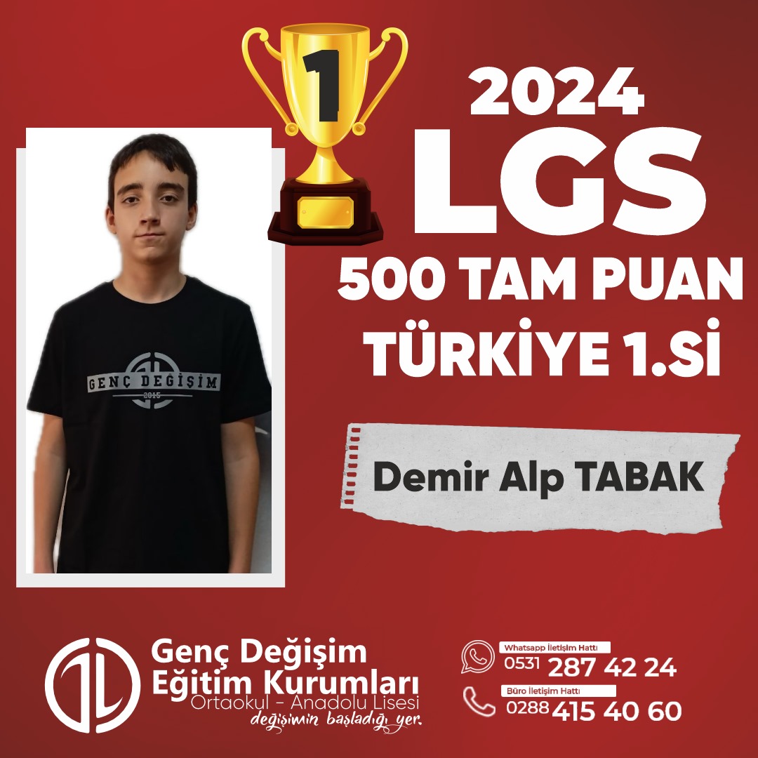 LGS 2024 Türkiye 1. si Genç Değişim Ortaokulu'ndan